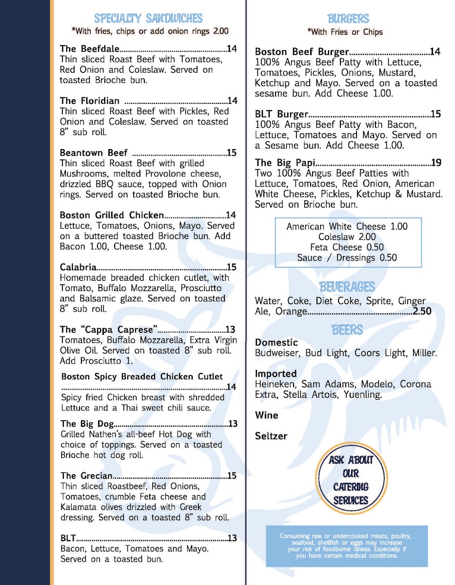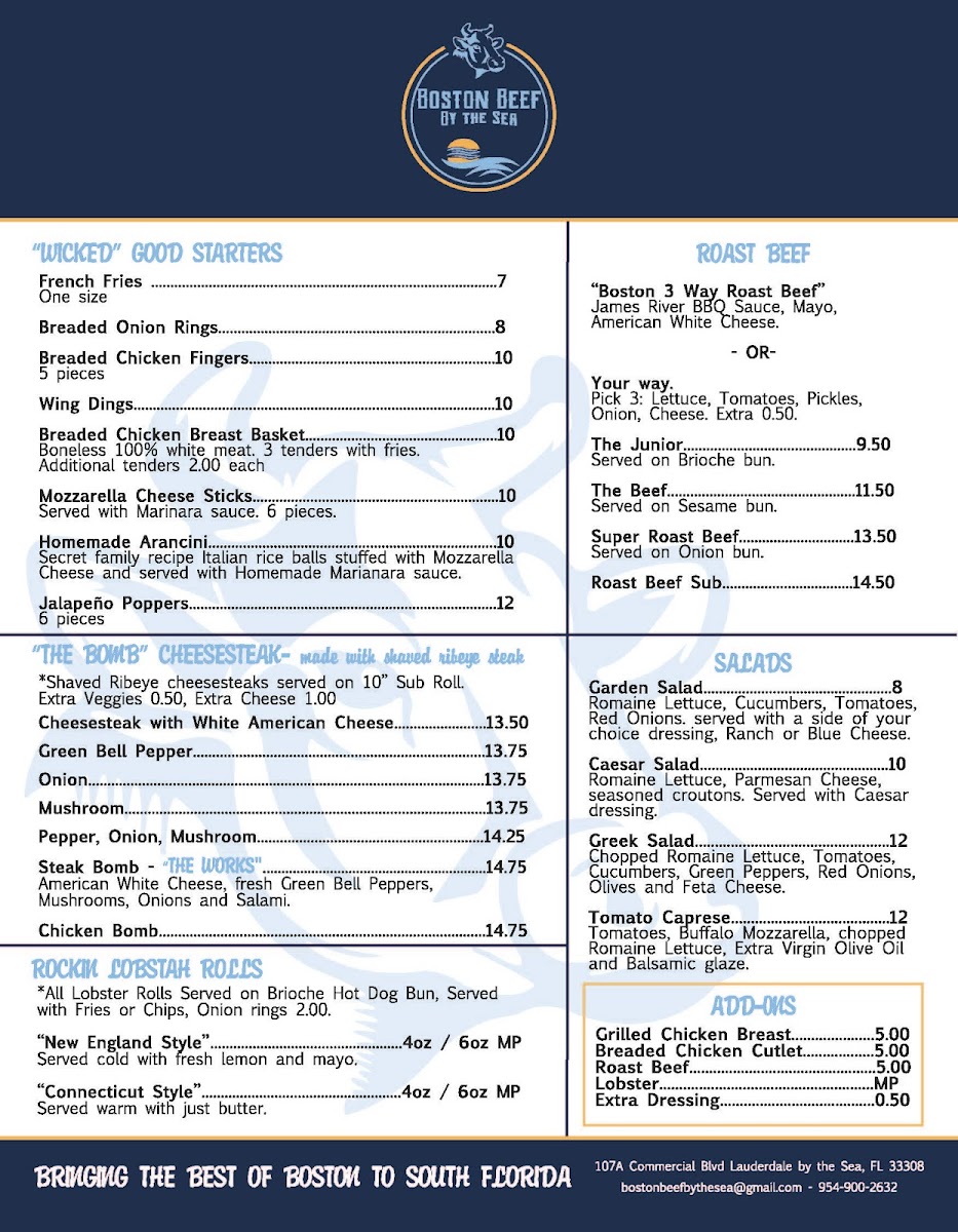 Boston Beef by the Sea Menu
